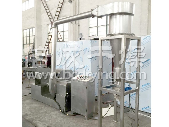 該機(jī)廣泛用于制藥、化工、食品行業(yè),全套機(jī)器有主機(jī)、輔機(jī)、除塵器、電控箱四個(gè)部分組成,均可粉碎油脂含量達(dá)25%以內(nèi)的香辛料、油性料,同時(shí)也可以粉碎機(jī)纖維含量比較高的中草藥。粒度用篩網(wǎng)控制,常溫下過程生產(chǎn)連續(xù)進(jìn)行。具體粉碎物品有辣椒、胡椒、黑胡椒、白胡椒、綠胡椒、肉桂、孜然、草寇、大紅袍花椒、桂皮、紅寇、紅曲米、豆蔻、紅麻椒、蒜香、八角、丁香、砂仁、香葉、草果、姜黃、干姜、白芷、小茴香、大料、油性物料及纖維性物料等物料,不需要粗粉碎可直接投料,產(chǎn)量大,不變色,維持物料的原有物理化學(xué)特性。