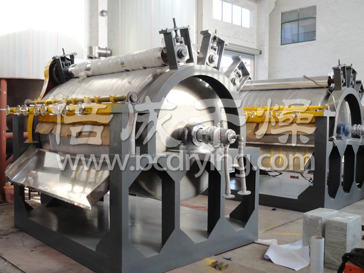 ◎干燥時(shí)間短。物料的干燥周期一般只有10-300秒,在適合于熱敏性物料。若將滾筒干燥機(jī)設(shè)置在真空器中,則可在減壓條件下運(yùn)行。