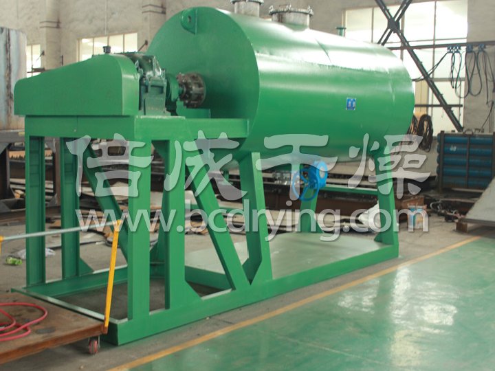 本機(jī)是一種新穎臥式間歇式真空干燥設(shè)備,濕物料經(jīng)傳導(dǎo)蒸發(fā),帶有刮板攪拌器不斷清除熱面上的物料,并在容器內(nèi)推移形成循環(huán)流,水份蒸發(fā)后由真空泵抽出。